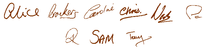 Alice Audsley, Caroline Allen, Chris Batstone, Nick Hawkes, Paul Brock, Paul Clayton, Sam Batstone, Tony Audsley