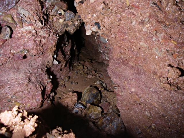 That was enough excitement for one day, so Jeff, Rich and Tim came back to the surface to start up the mixer and I (Tony) went down and fitted the re-bar, then made myself comfortable on a pile of digging bags in preparation for an afternoon's concreting. Two loads were used altogether. The first mix was a trifle too sloppy - Tim said that the water they used had been too wet, so that probably explains it. We finished, cleaned and packed up by about 1630. Chris Batstone, Mike Wilson, Stuart Lindsay, Tim Large, Clive North, Tony Audsley Kibbles: 21 NOTE: Today was the 34th BEC Vintagers' Annual Luncheon held at Coxley Vineyard, 12 noon onwards. So while I feasted, the rest of the team got on with some hard digging unhindered by my usual delaying tactics. I left the celebrations rather early at 1600 hrs, getting to the dig at 1700. The team had enjoyed a fantastic digging session, Stuart and Tim underground sending up 21 kibbles of spoil to Chris and Mike on the surface. Some of the spoil had come from under shaft segment 7C (east), in preparation for concreting 7D below, bringing it to the same level as 1D (north) and 5D (south). This will leave 6D (south-west) and 8D (north-west) still to do to complete the fourth section of concrete. Their major effort, however, was within the Annex chamber, where the floor was lowered towards the rear (west) of the chamber, sloping down steeply from the entrance and the base of the concreted left-hand wall. Stuart and Tim uncovered much more of the left hand rift and Tim was able to worm his way feet-first into this for almost two body lengths. The rift continues but it needs further clearing and, ideally, the floor of the Annex chamber needs lowering some more to improve access. Tim suggested the name 'Rough Diamond Rift' partly because Tony Jarratt described cavers as 'rough diamonds' and partly because of abrasive nature of the walls of the rift. A hastily convened meeting of the sub-committee on passage names approved his suggestion. It will, however be referred to as RD Rift or RDR from now on in these pages to avoid confusion for those who use Google to look for references to gemstones. On the surface, a new spoil heap was started on the west side of the dig and Stuart started building a retaining wall for the heap out of the large amount of rock that had come out of the dig during the day. Tim extended his rude shelter round the shaft with more wriggly tin on the south side and a tarpaulin supported on scaffold poles on the north side. He also installed a weathervane on top of the headframe. Tony and Clive turned up at 1700 hrs, then Tony had a token squirm into the passage, got slightly stuck, came out again and then spent a short time discussing important matters of philosophy and morality with a large boulder in the Annex chamber, finally managing to bore it to bits. We packed up and left the site at 1830. Alice Audsley, Chris Batstone, Chris Harvey (Zot), Stuart Lindsay, Nick Gymer, Tony Audsley Kibbles: 12 Mixer Loads: 5 1030 hrs; Stuart and Tony surveyed the wreckage of humanity at the Belfry and managed to persuaded Chris Batstone, overhung and suffering from a painful knee, and Nick Gymer, suffering from a badly gashed right hand to come over to the dig. On the theory that we probably had enough working limbs between us, we decided to go ahead. As a bonus, a fully functional Zot turned up out of the blue. Alice was due to arrive at midday with refreshments, so we were well away. The intention was to shutter segment 5D (four levels down on the south side of the shaft), and extend this to run into the Annex to support the left hand wall, where all the bag stuffing had been going on yesterday. Segment 5D was to be shuttered using the 'conventional' steel shuttering, but attached to the right hand side of this was to be wooden shuttering for the left-hand wall of the Annex. This required a considerable degree of bodgery both for the shuttering and the reinforcing. To start with, Tony went down and fitted the steel shutter in position. It was then obvious that the floor needed lowering some more and so he was joined by Stuart and together they filled 12 kibbles of spoil, which were hauled out variously by Zot and Chris. This included the material stacked under the Annex wall on Saturday. After this, Stuart went up and left Tony to play on his own. [I am not altogether sure of the details about the surface work from this point on, but from the sounds filtering down the shaft it seemed to consist largely of boiling the kettle then drinking tea. But I may be wrong.] Underground, two 18mm holes were drilled in the back wall of the Annex to take 4 ft lengths of 16mm re-bar. These were then attached to 12 mm re-bars bent at 112 (ish) degrees which were hooked at the end. These were to join the Annex wall concrete to segment 5D. A cat's cradle of more horizontal and vertical 12 mm re-bars was made inside segment 5D which looked like it might do some good. Four 12 mm holes were drilled in the back wall of the Annex close to the line of the ply shuttering and the back end of the ply was secured by 10mm re-bar pins and wooden wedges, the gaps being sealed with scraps of polystyrene (wonderful stuff). The shaft end of the ply shuttering was abutted against the steel work and sealed, as ever, with a thin strip of polystyrene. It was held in position by re-bar and wedges jammed down from above, a G-clamp onto the steel work (which later fell off) and I am not quite sure what else, possibly luck, but whatever it was, it didn't move. Then started a mammoth concrete mixing session. A letter-box slot had been cut in the ply shuttering, but in practice a large proportion of the concrete was fed in via the shuttering for 5D and pushed along to the back of the void with a 4ft length of 25mm plastic water pipe. As the shuttering filled, it had to be fed from both ends, which was quite (actually very) tedious in practice. The highlight of the day as far as I was c