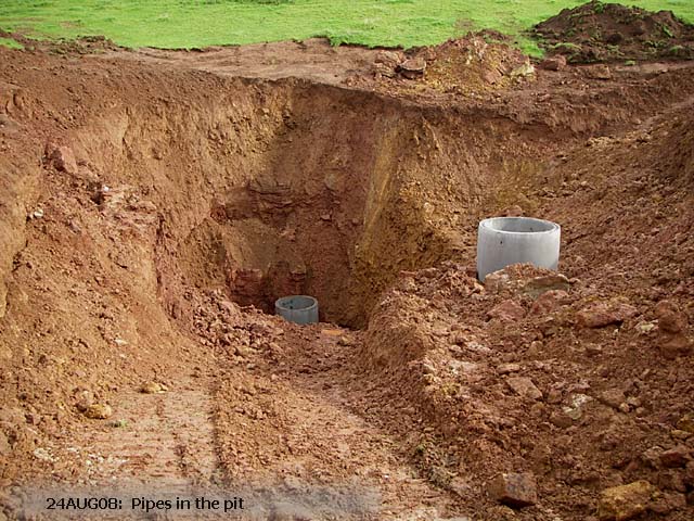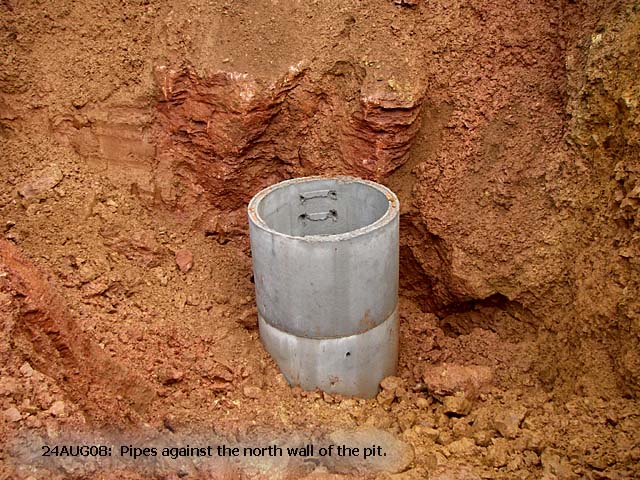 24AUG08: Pipes against the north wall of the pit |