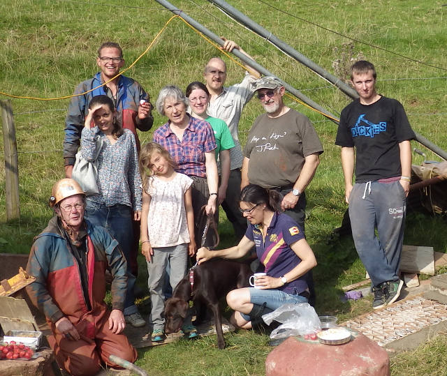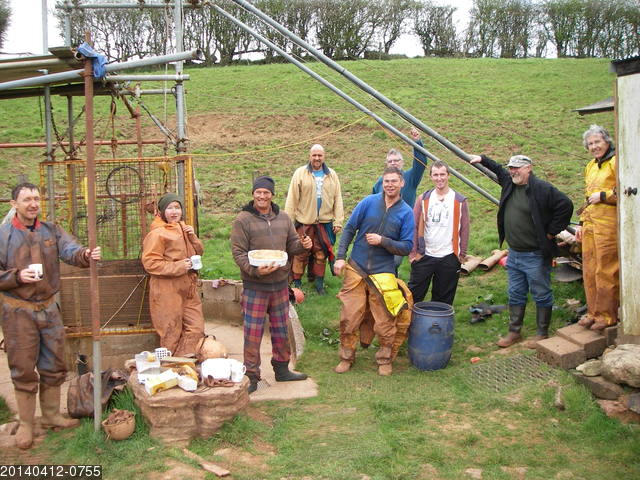 12APR: Aprés dig feasting. LR: Nick, Caroline, Paul, Rupert, Tangent, Jeff, Sam, Chris, Alice |